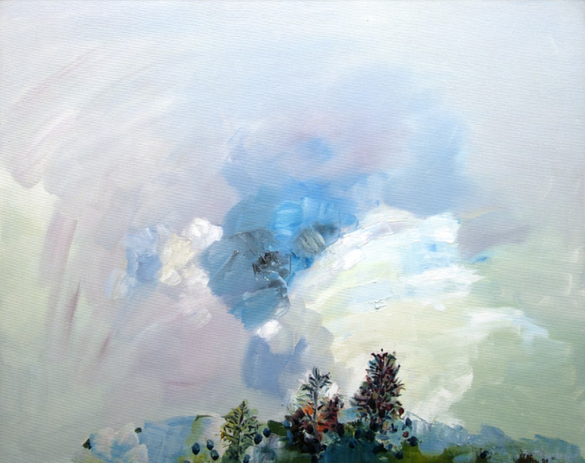 "Ciel paysage" ©alainhalter 1981. Peinture à l'huile sur toile tendue sur châssis. Année : 1981. Format 25F : 81 (largeur) x 65 (hauteur) cm. Hors encadrement. Pièce unique. Encadrement sur demande avec devis.