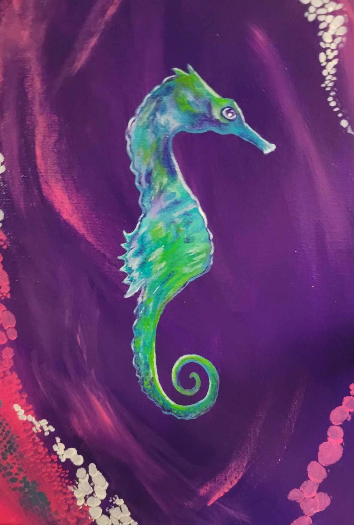 In Greek mythology, the seahorse is a fantastic creature with the front part of a horse and the back part of a fish.