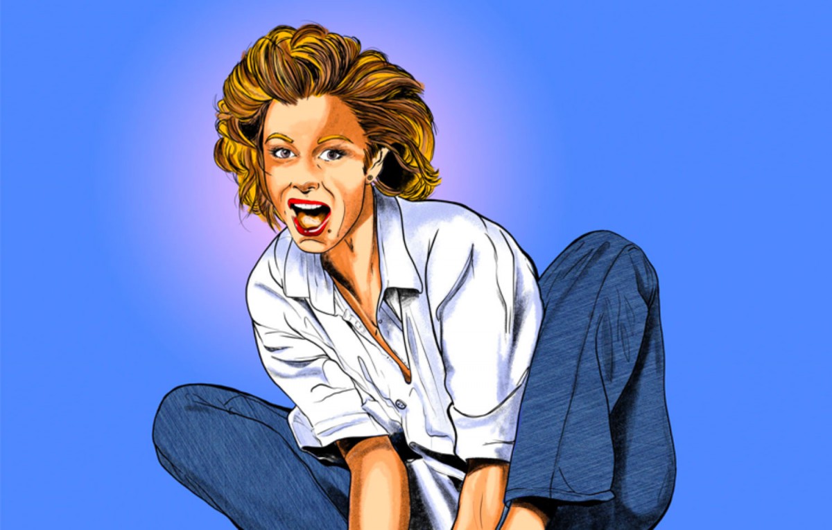 femme-accroupie dessin numérique qui est une reprise d'un dessin executé a l'aérographe et gouache il y a 31 ans