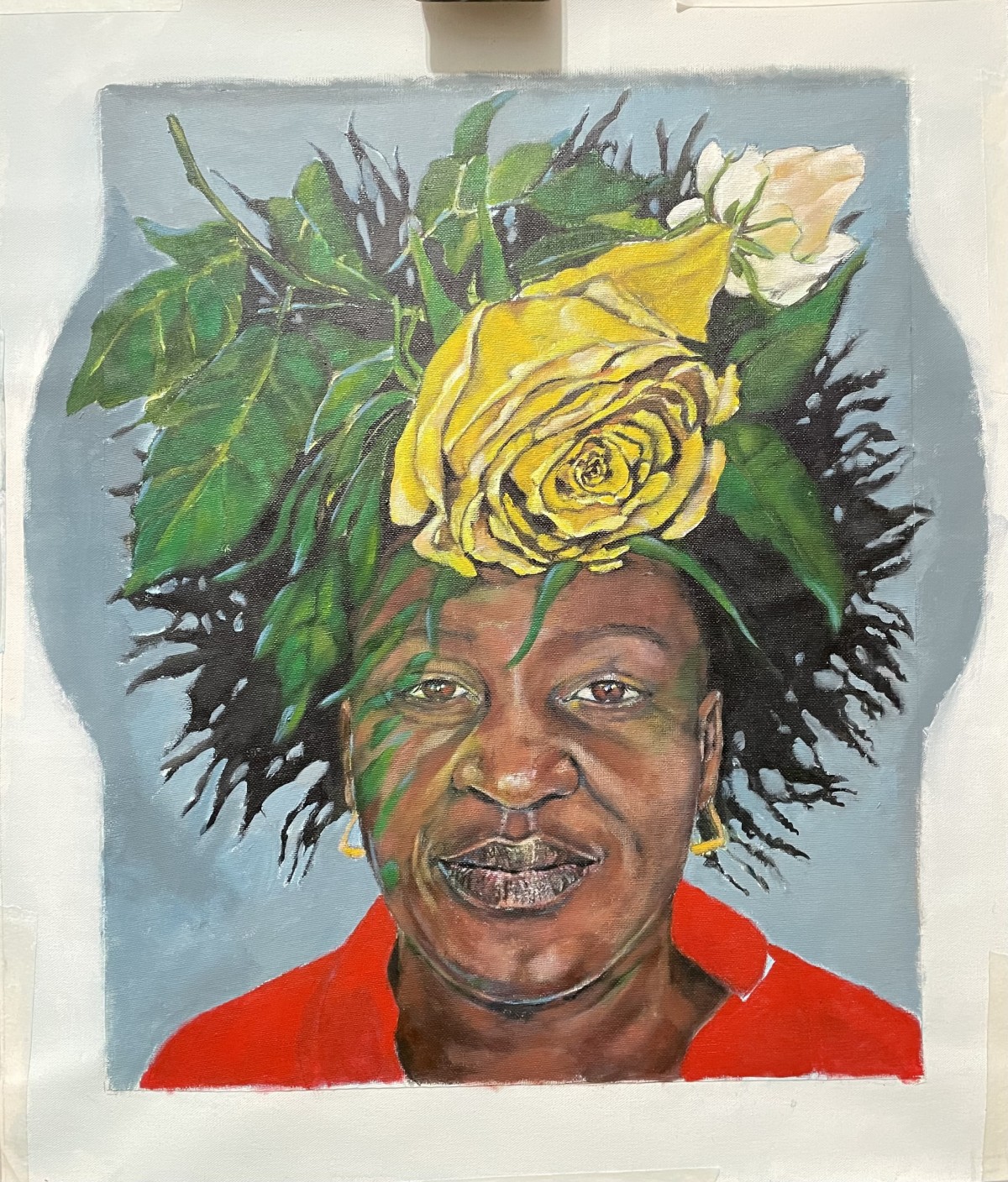 This painting is about the series "Os Submersos", how refugees are fragile to the system, separated families, lost or abandoned children, hardships of life in a symbology of belonging, volatility, ephemerality. The flowers belong to them, their annoyances their privations in an inclemency forced by their condition. And that my unveiling through painting, can revalue our interdependence as human beings, narrating human history, articulating signs and language.