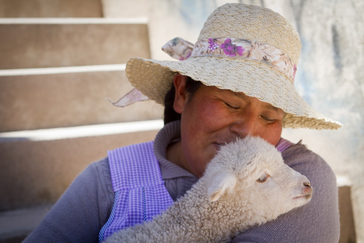 On the altiplano of Los Andes between Peru and Bolivia, Titi Kaka lake brings good grass for lamps and rich shepherds, but some of them have very few, not enough to create a business but enough to carry a lamp as a family, this Aymara woman show me her last lamp, she promises me that she loves it like a kid and her expectations are hight to work clothes with his wool.