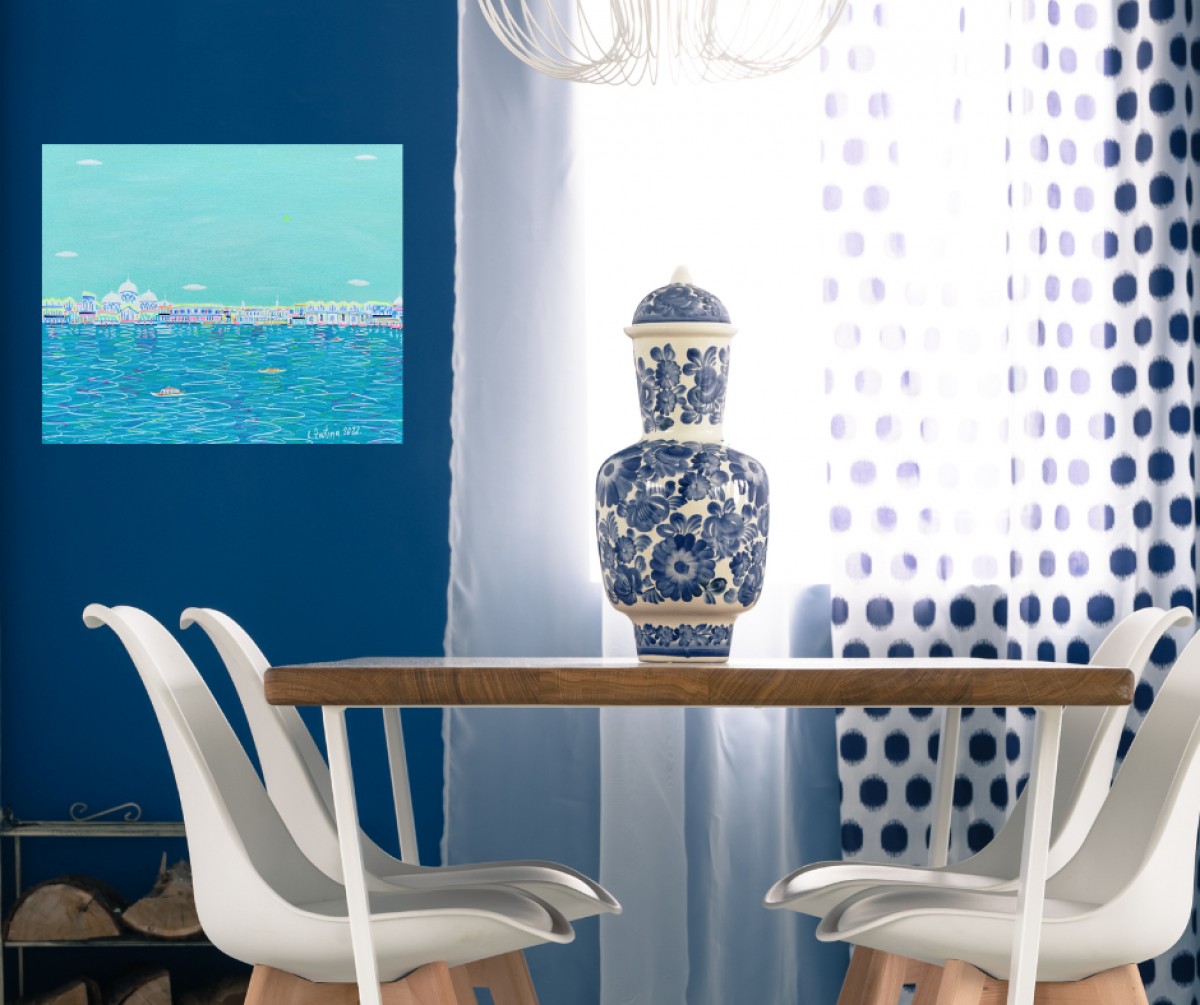 The painting is 2 cm deep and can be hung without an additional frame, also all picture sides are painted.