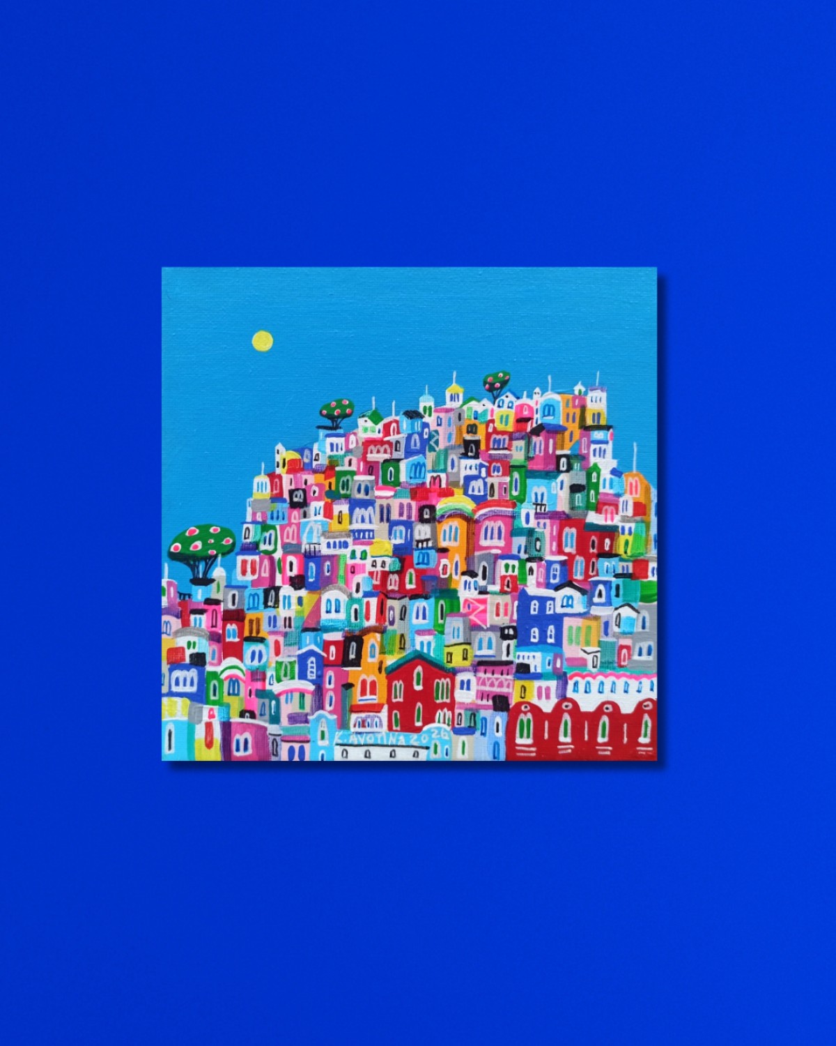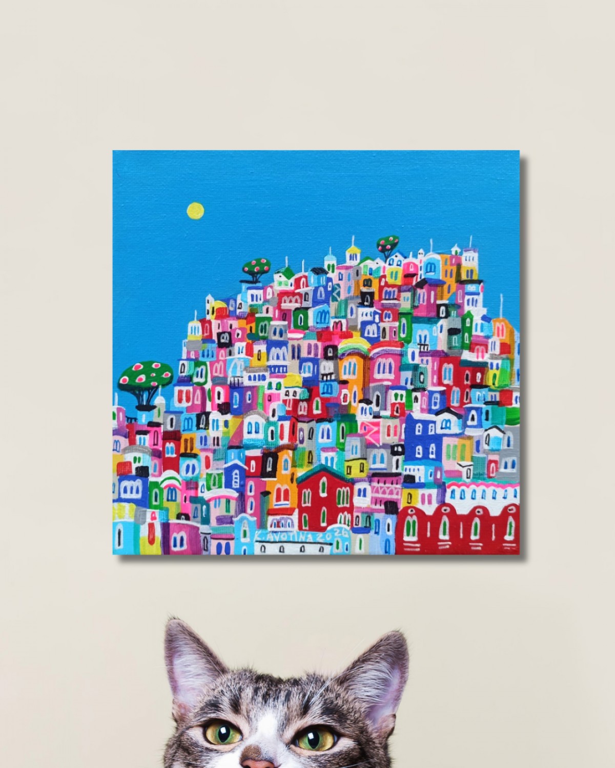 The painting is 2 cm deep and can be hung without an additional frame, also all picture sides are painted.
