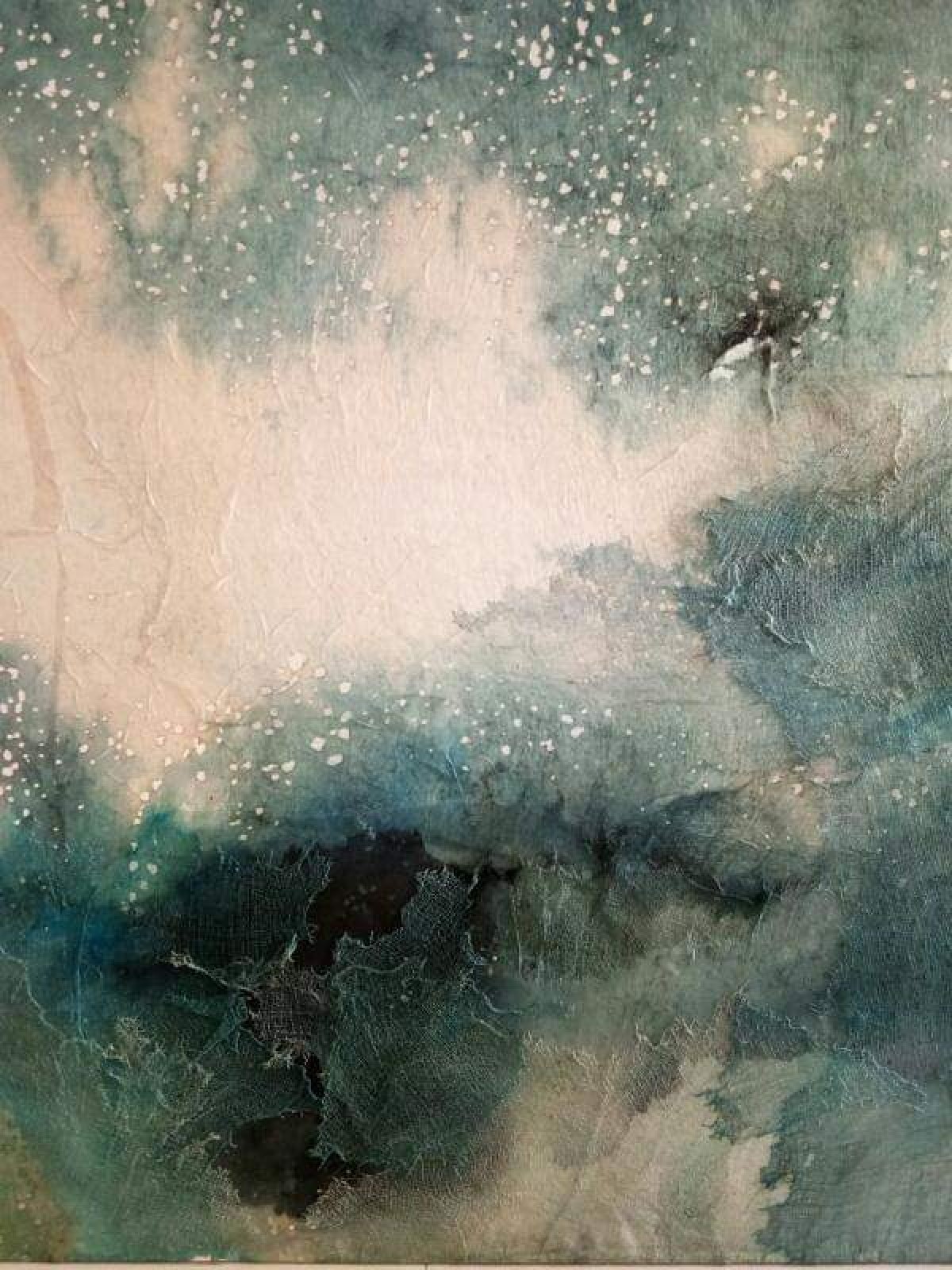 Untitled abstract in acrylic on canvas with mixed media using paper and fabric and experiencing the abstract expression.