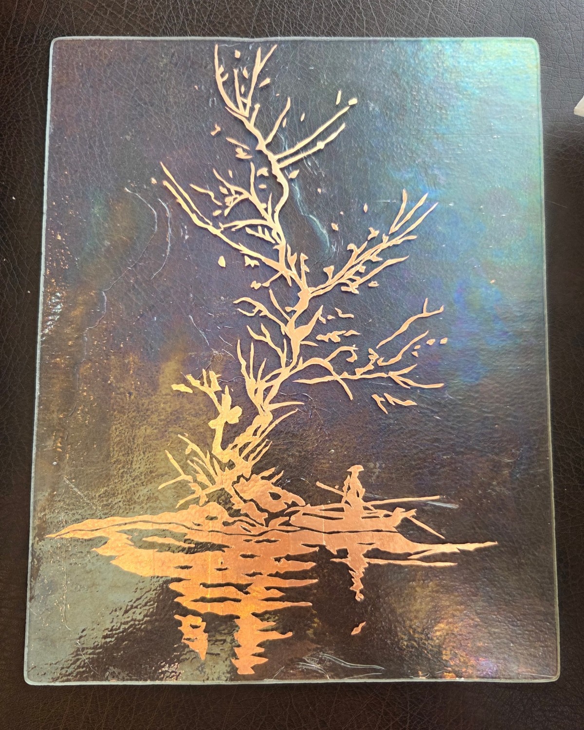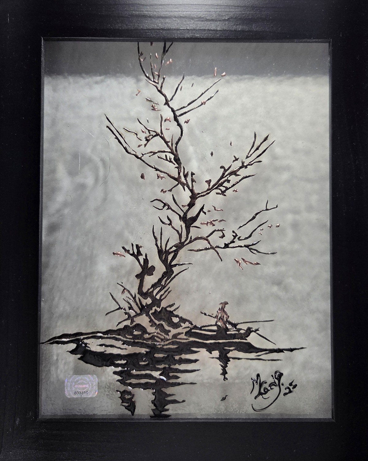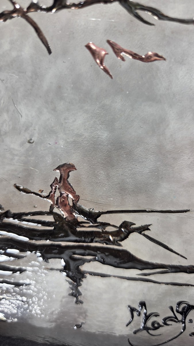 Seul au bord de l’eau, le pêcheur contemple l’arbre qui s’élance vers le ciel et qui se reflète dans la profondeur de la rivière. Entre terre et miroir, il devient le gardien silencieux d’un instant suspendu. Cette oeuvre évoque la patience, l’équilibre fragile et la sérénité qui naît de la contemplation.