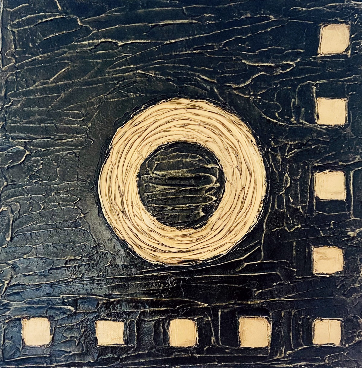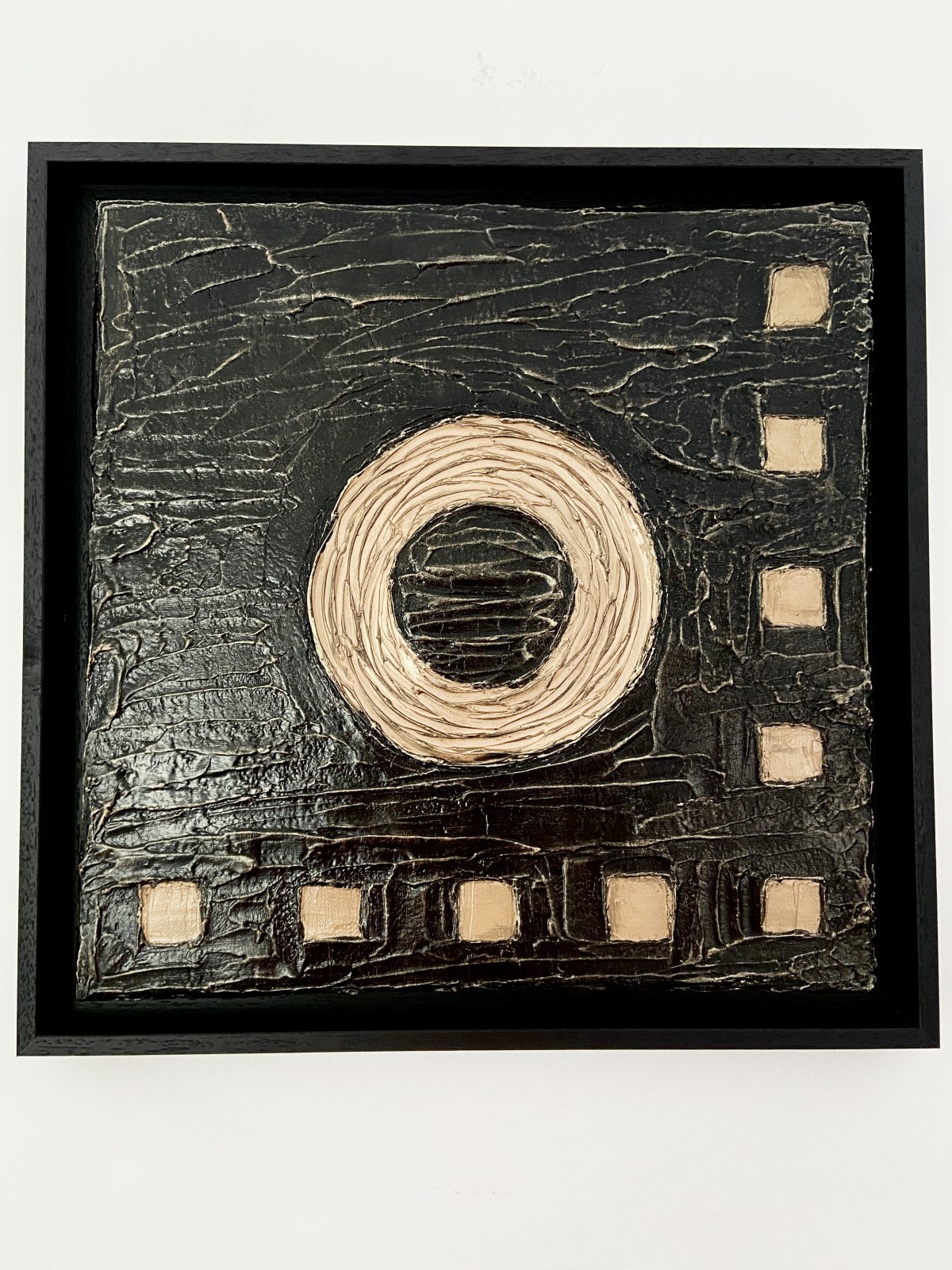 "Geometric Symphony" Structural paste painting 40 x 40 cm framed.