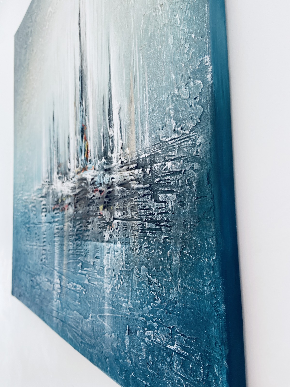 Picture Painting, acrylic, nature, seascape, blue turquoise white, 58x58cm, unframed