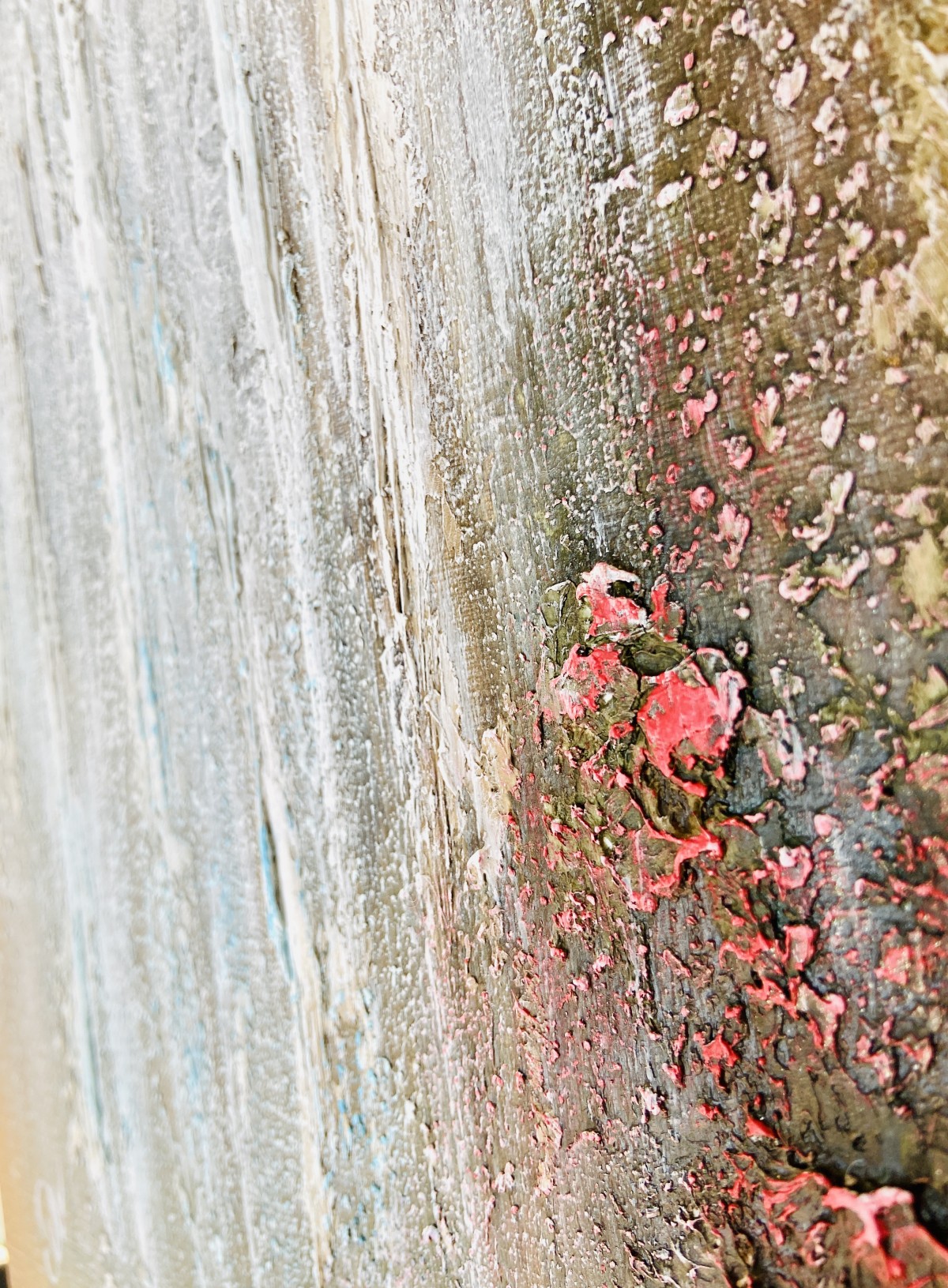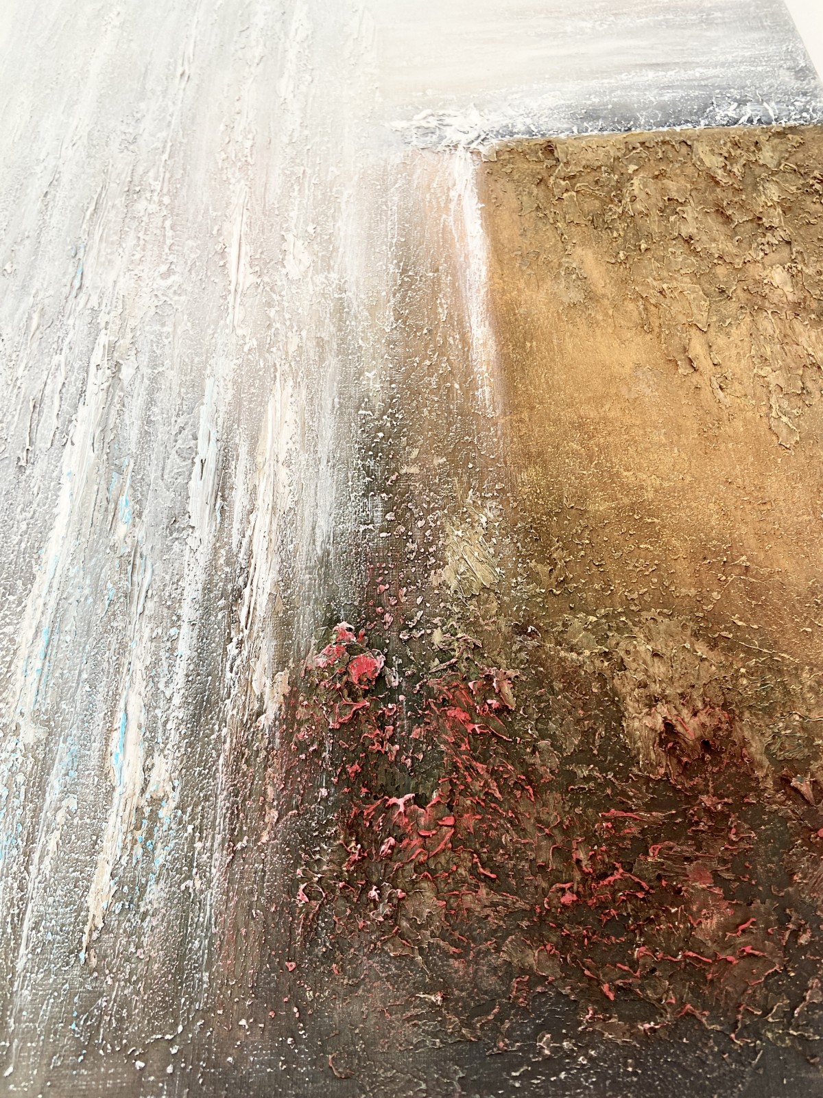 Textured paste creates volume and the feeling of a living landscape.