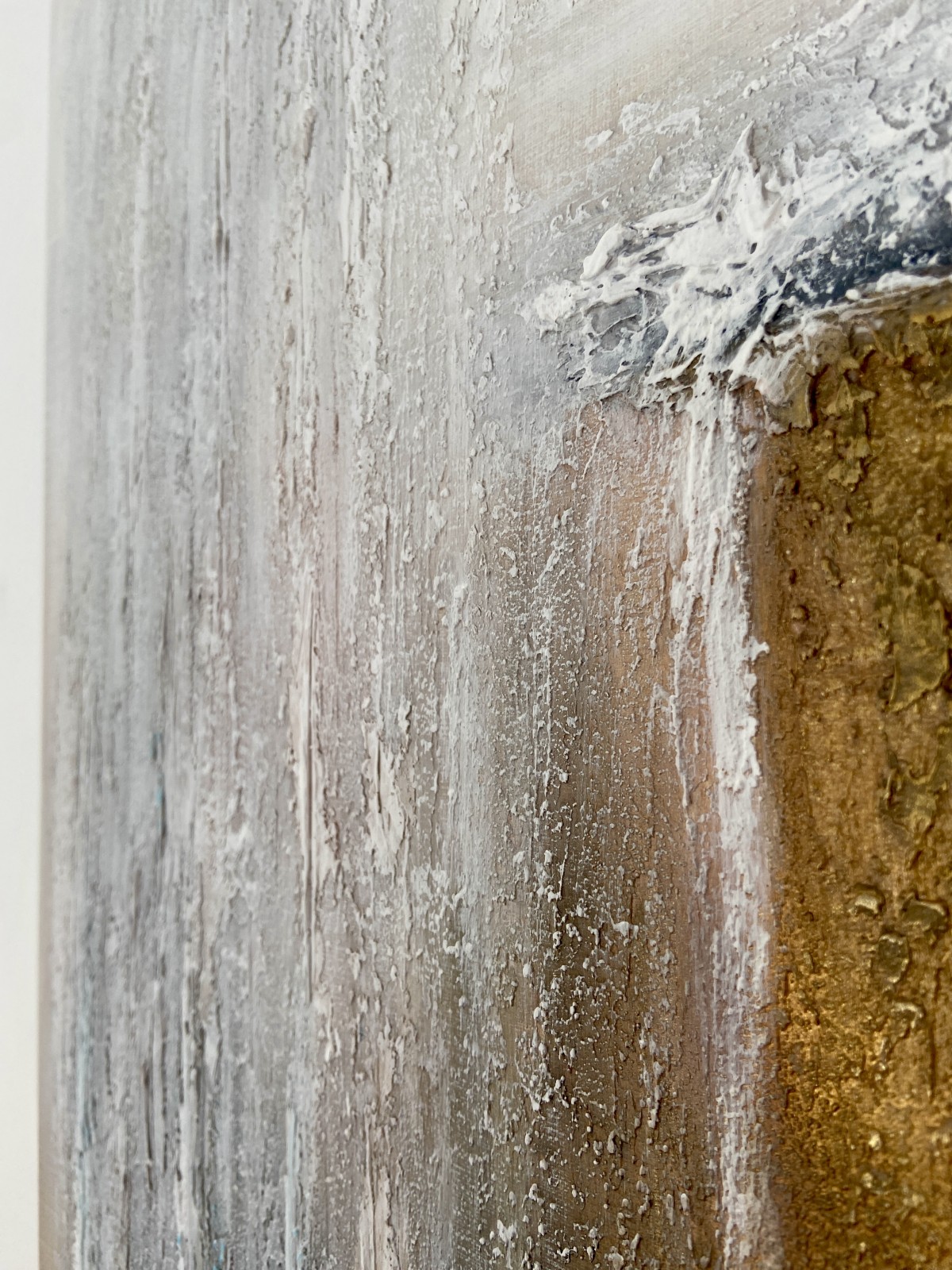 Acrylic paints emphasize the depth of the earth and the movement of light. Natural tones — from soft grays to golden browns — bring harmony and warmth. Each layer of texture seems to breathe and carry the energy of the elements. The artwork reminds us of the eternal bond between humans and the earth. You can feel the breath of the wind, the weight of the rocks, and the warmth of the light. The balance of light and shadow creates a sense of presence and peace. This piece evokes respect and admiration for nature’s power. Perfect for interiors that value grounding energy and natural balance.