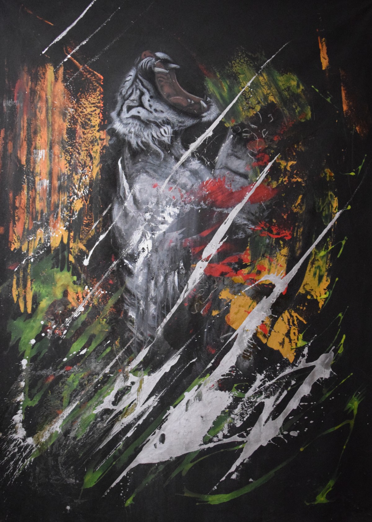 Acrylic, mixture, oil panting and charcoal on canvas without board.
