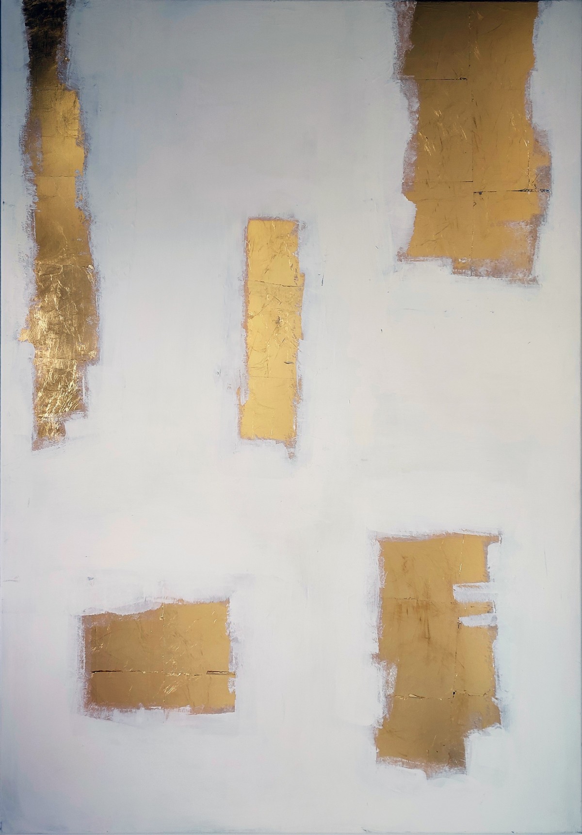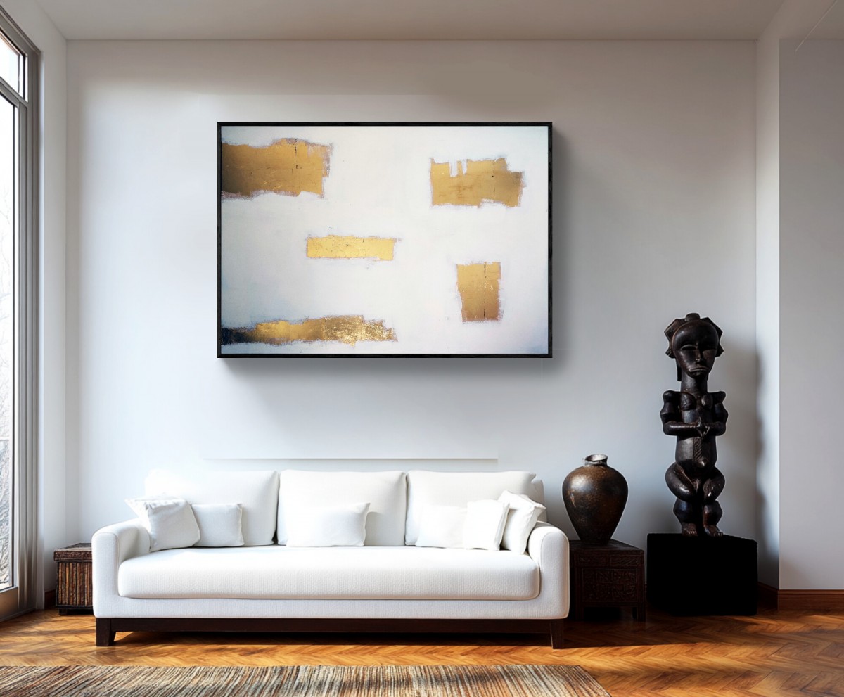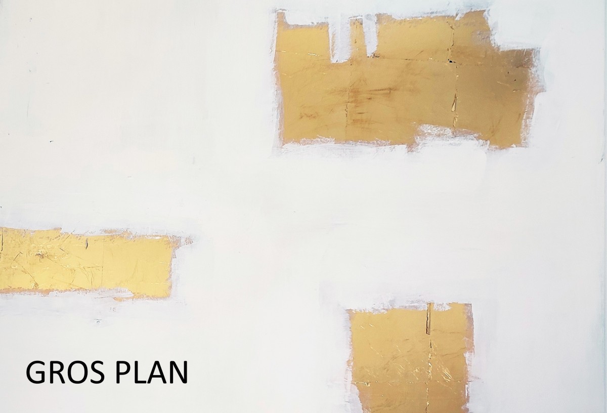 Feuille d'or et peinture sur toile, grand format 130/100 cm environ .