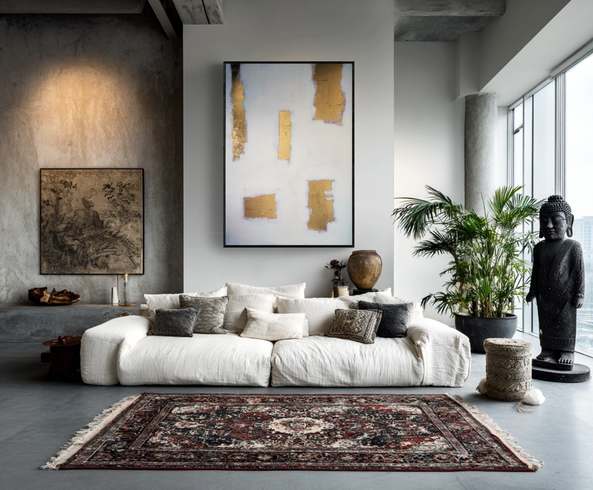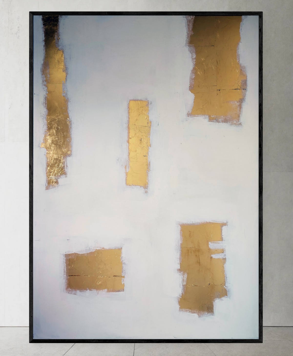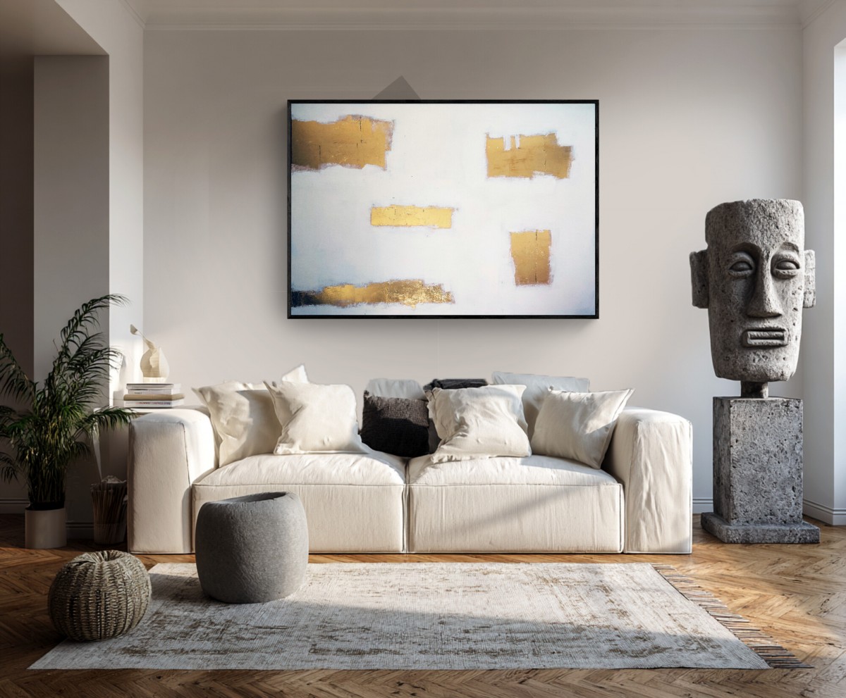 Feuille d'or et peinture sur toile, grand format 130/100 cm environ .