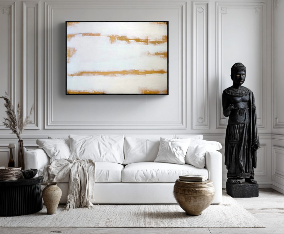Feuille d'or et peinture sur toile, 80100 cm environ .