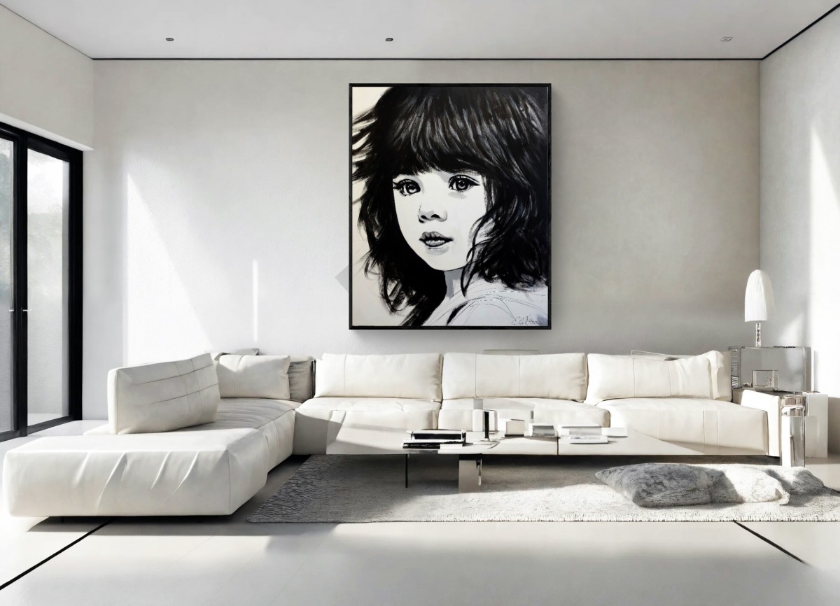 Une grande peinture acrylique sur toile , format 100/80 cm . J'ai voulu exprimer la douceur de l'enfance .
