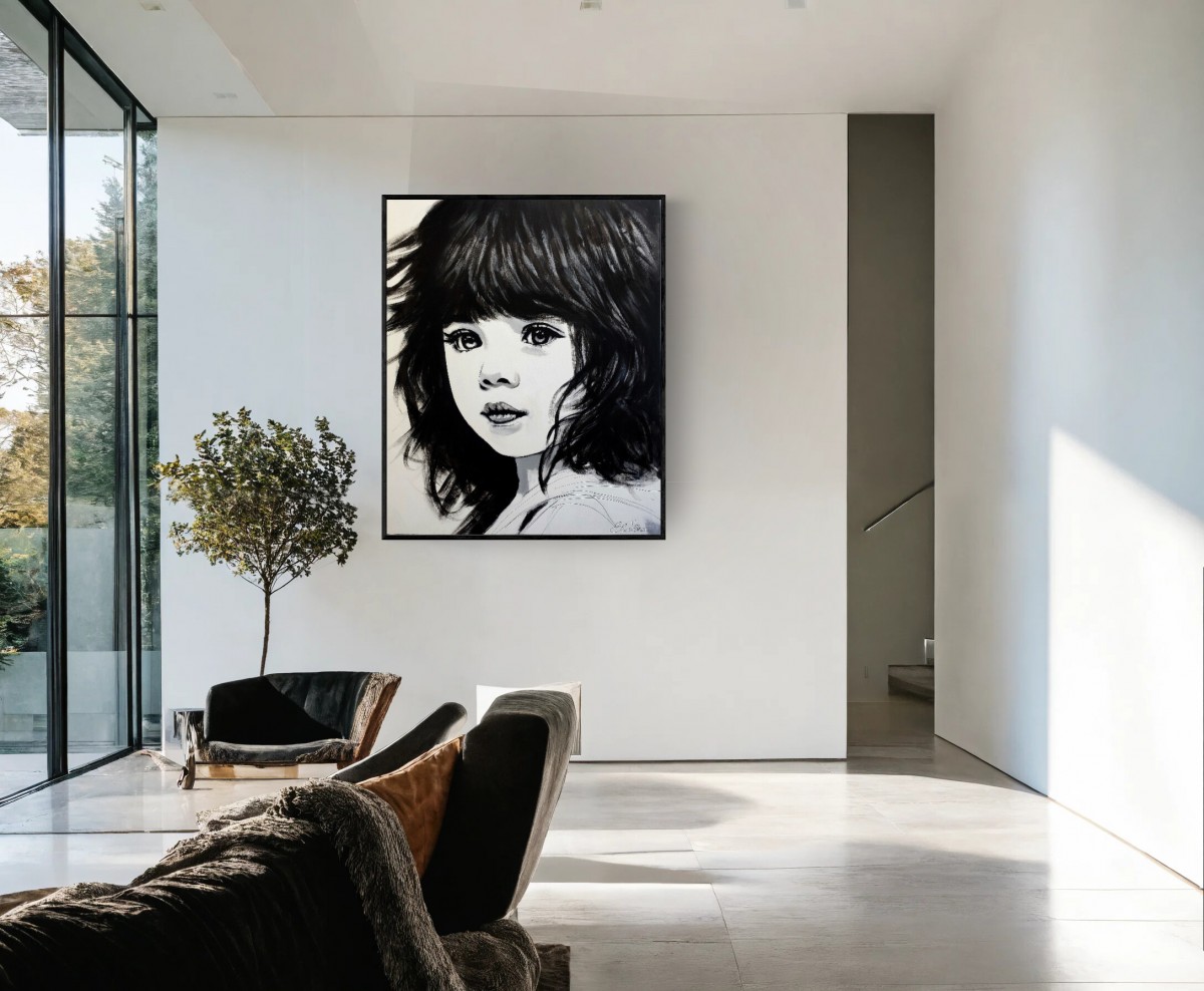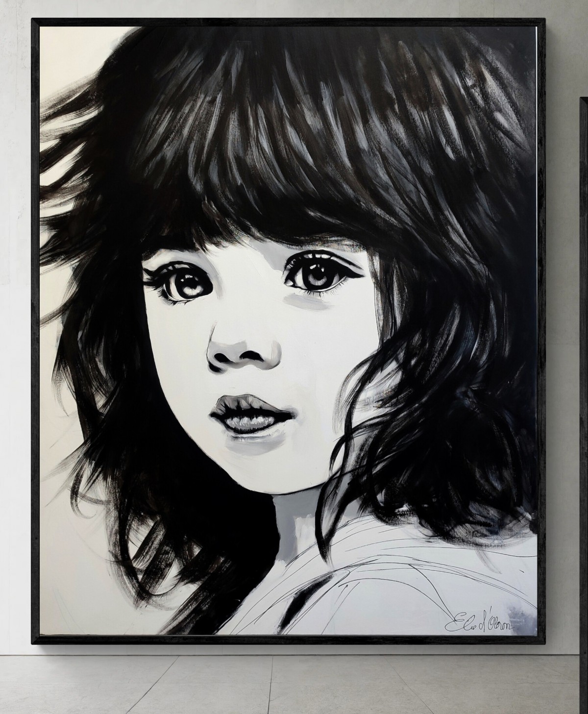 J'ai donc fait un portrait de cet enfant en noir et blanc, le regard profond et deja plein de questions sur le monde qui l'entoure .