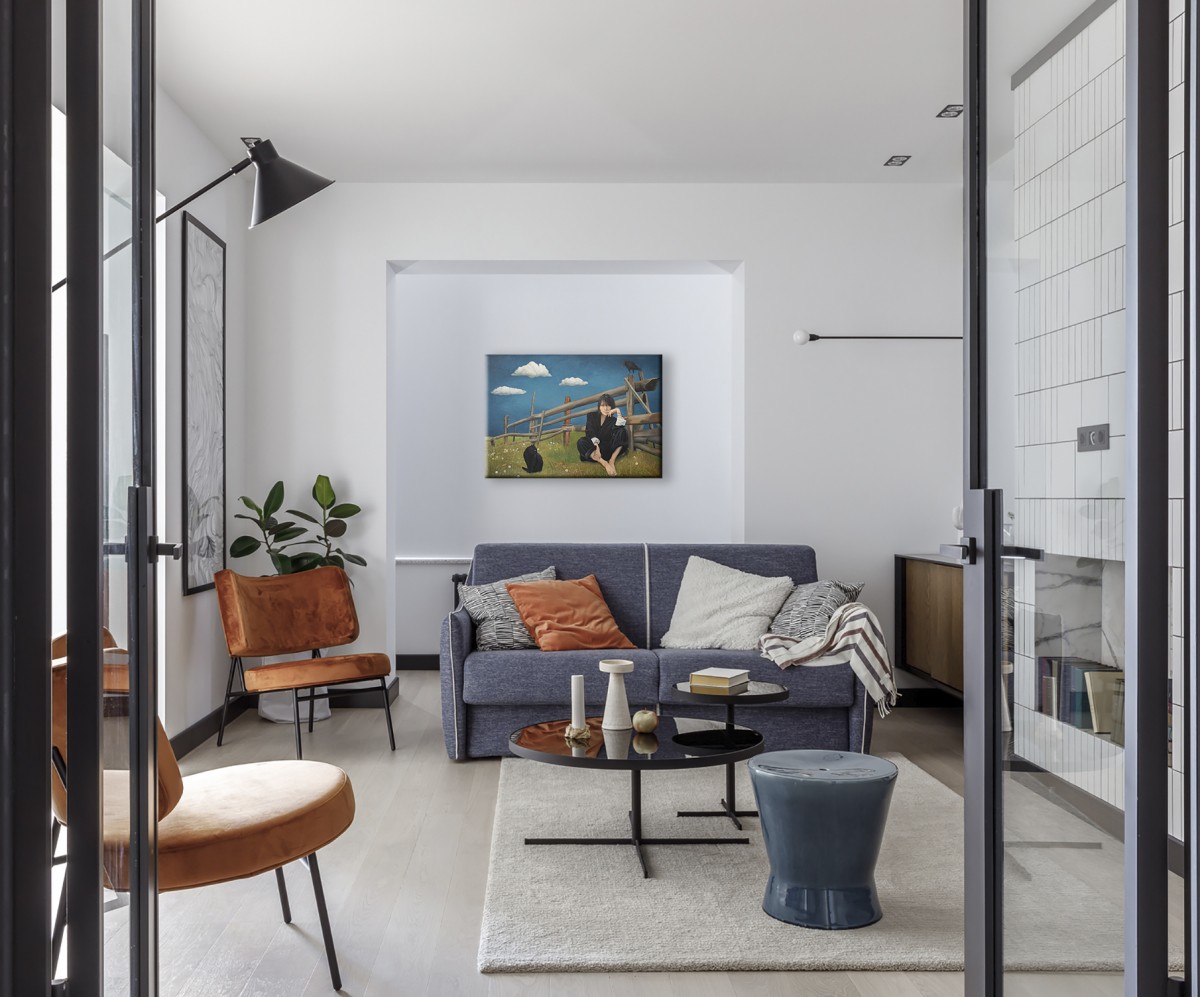 Dutch acrylic paints Amsterdam tm and Italian canvas by Unico were used. The finish is satin varnish, and the edges are painted in the background color. This painting is created on a pre-stretched canvas on a wooden frame. It is carefully packed in a cardboard box with layers of bubble wrap. The artwork is signed and accompanied by a certificate of authenticity.