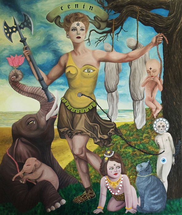 Cenin’s works concerns self alienation & actualization, the psychic state of infant hero, the after-effects of a child’s separation from the mother through birth, the feelings of death – despair melancholy, unfulfilled feminine idenitity, inner images of wounded mother & child, being unable to speak, traumatic feelings of being born, life vs. death instinct, alienation, self destruction & reparation, sacrificial infant/fetus gods, divine child, lost & found reality, layers of consciousness, dramatization of simulations, infantile anxiety, Jungian archetypal symbolism, gnosticism, occultism, juxtaposition of depressive and manic, mental interconnectivity…