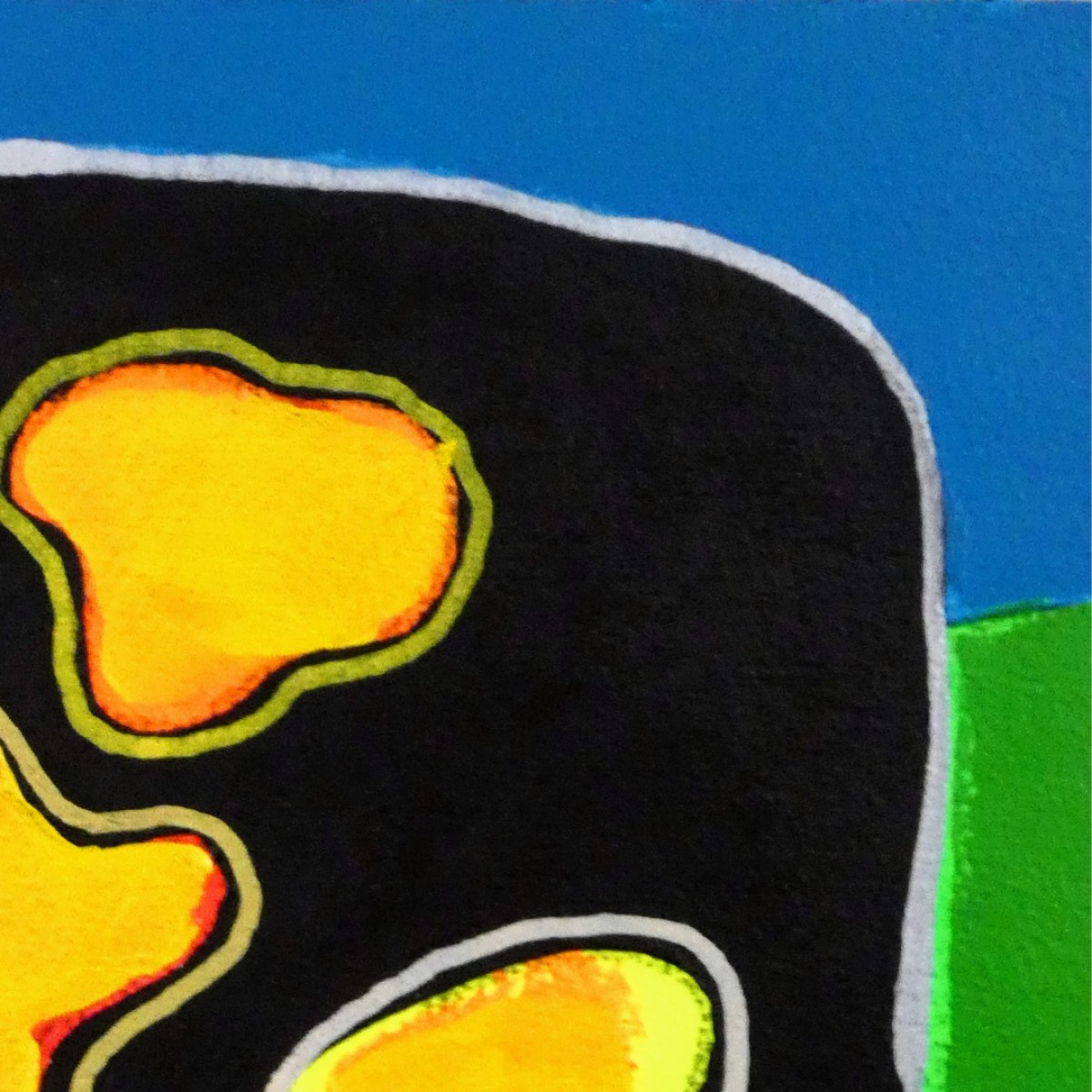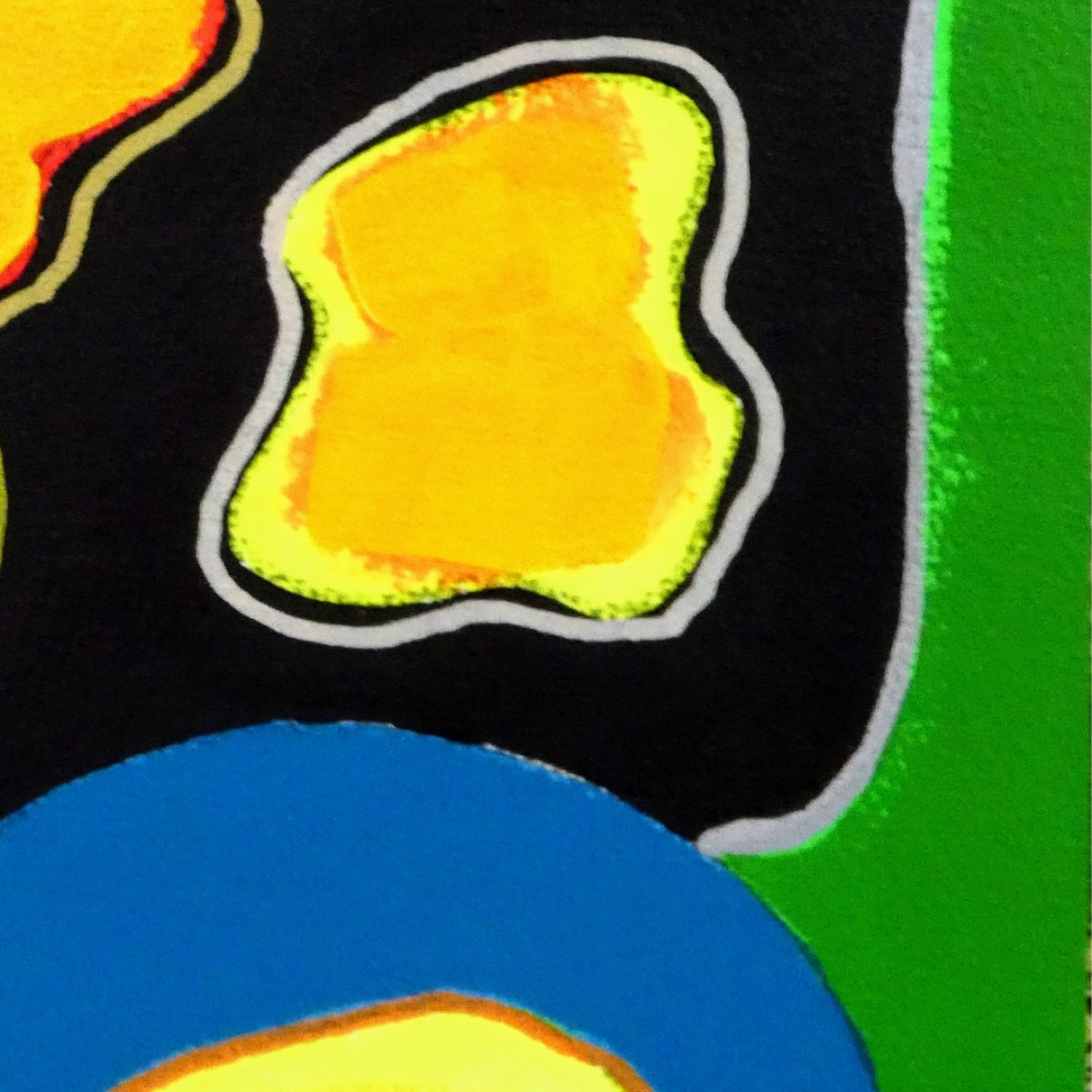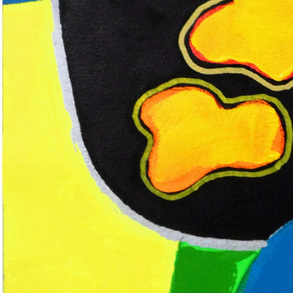 “Citron et bouquet de fleurs” ©alainhalter 2023. Acryliques extra fines Rembrandt et Amsterdam Talens (emploi de couleurs fluorescentes), feutres Posca sur papier aquarelle Arches grain torchon 185g/m². Année : Aubervilliers, mai 2023. Format : 31 (largeur) x 41 (hauteur) cm. Hors encadrement. Pièce unique.