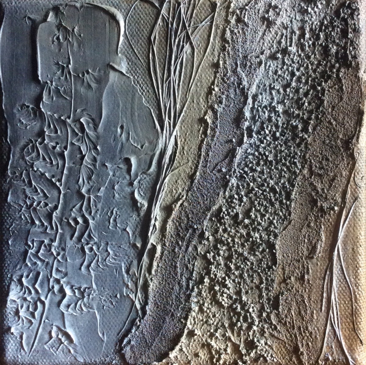 Techniques mixtes: peinture acrylique, mortier de structure, médium cinder, médium stuco, fibre sisal.