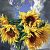 This lush, vibrant still-life is a memory of summer afternoons, lazy dreaming and hiding in the shade. The heavy, luxurious sunflowers are painted with thick brushstrokes, full of texture and colour. The skies are brimming with expected rain.