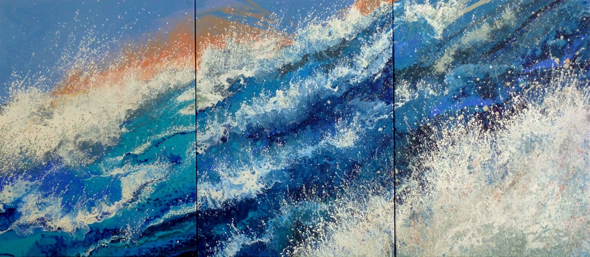 SEA TRIPTYCH (LARGE) on canvas Size: (3 panels) 23.6 x 31.5 x 1.5" ..... (60 x 80 x 3,5 cm) x 3 =31.5 x 70.8 x 1.5”.....(80 x 180 x 3,5 cm) combined ! * * * More informations on my site * * *