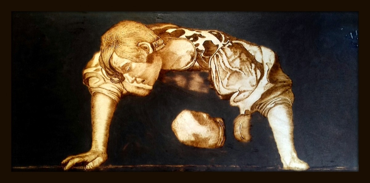 The design was firstly made with pencil on the birch plywood and then I burned it with my woodburner. It is a procedure that requires patience and precision.