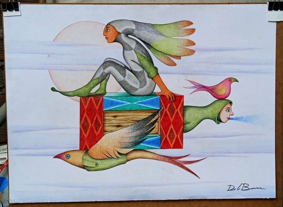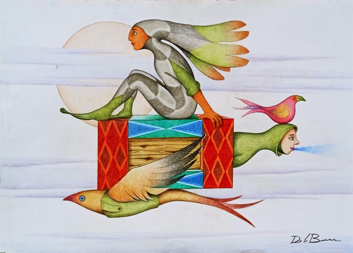 Original drawing on paper cotton 300 gr., availble in rolled tub (4"), with certificate and free shipping from Lima, Peru.
