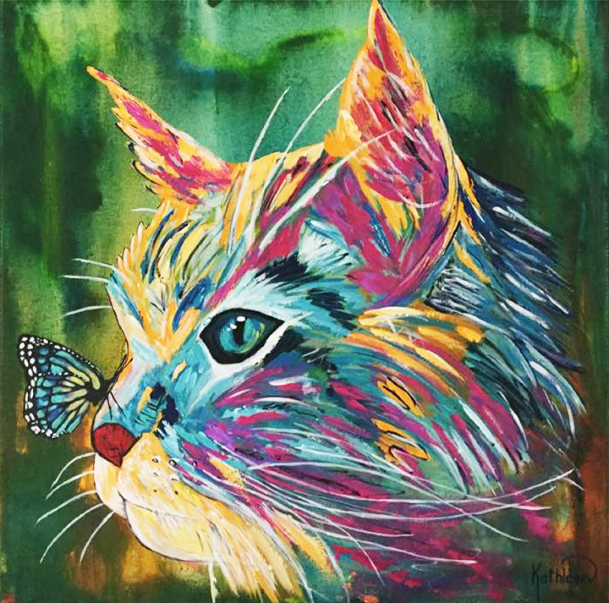 Cat Art Original Painting on Canvas Cat Painting Portrait Cat Art Canvas Cat Painting Cat Art Signed Cat Art Painting Abstract by Kathleen Artist.