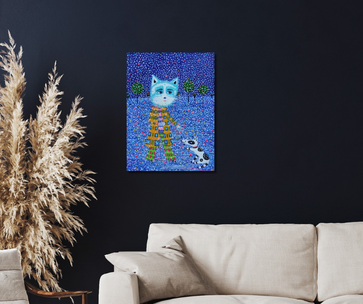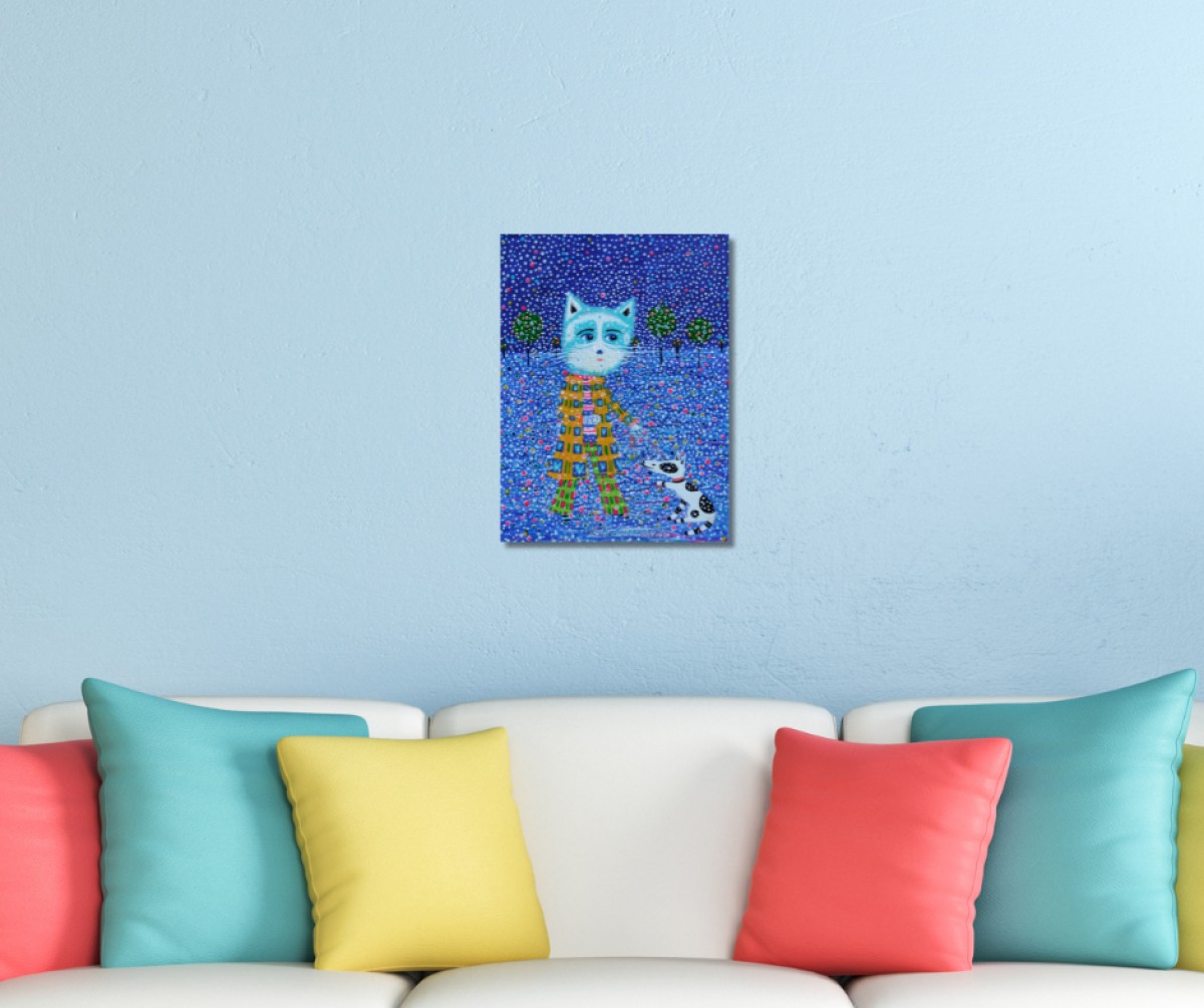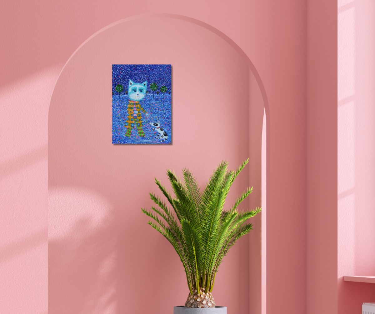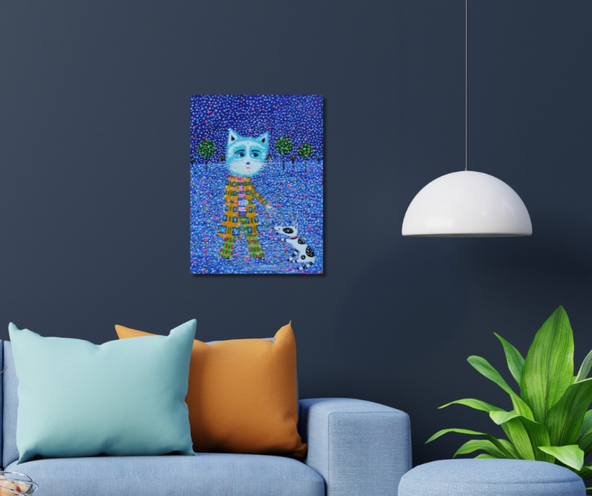 The painting is 2 cm deep and can be hung without an additional frame, also all picture sides are painted.