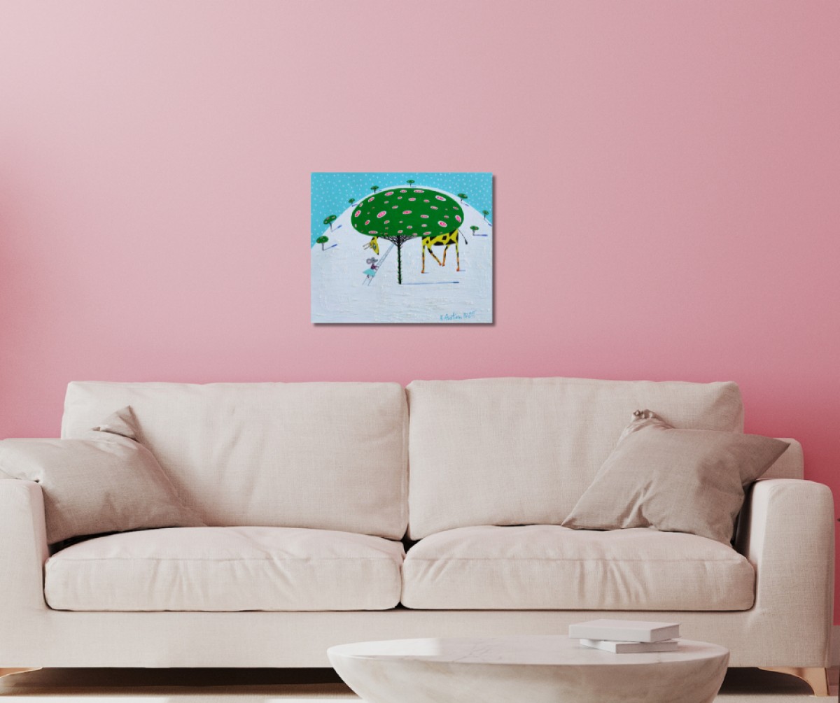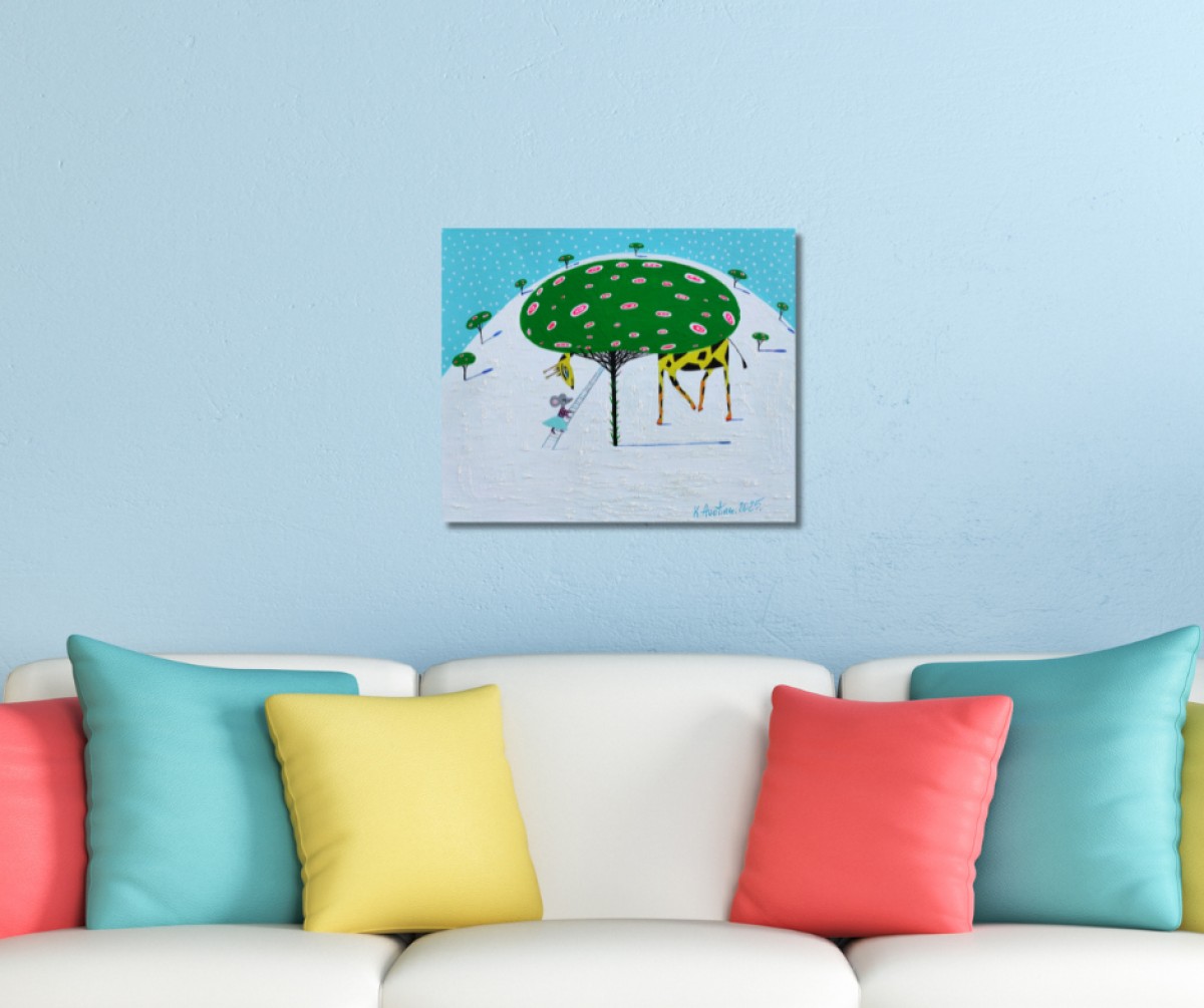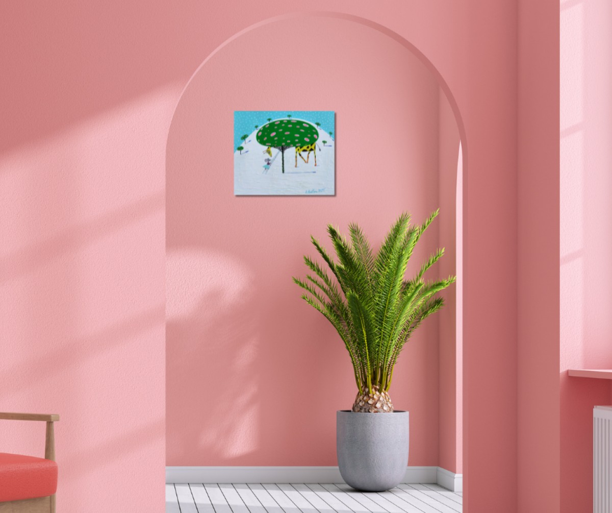 The painting is 2 cm deep and can be hung without an additional frame, also all picture sides are painted.