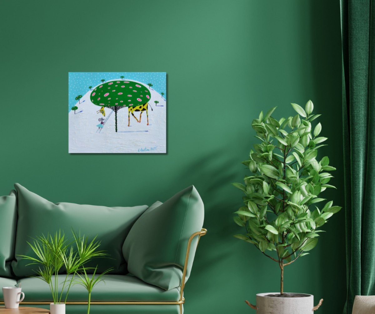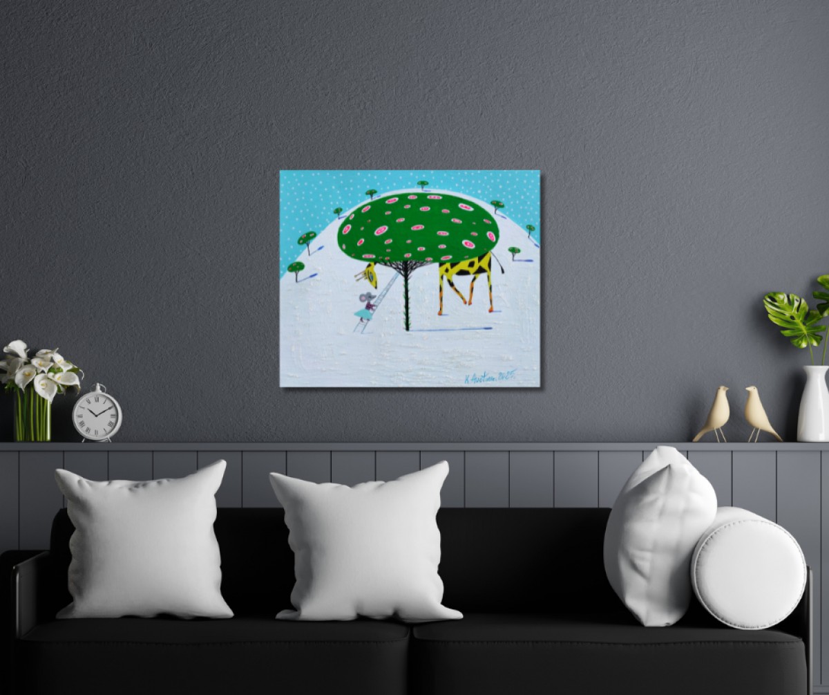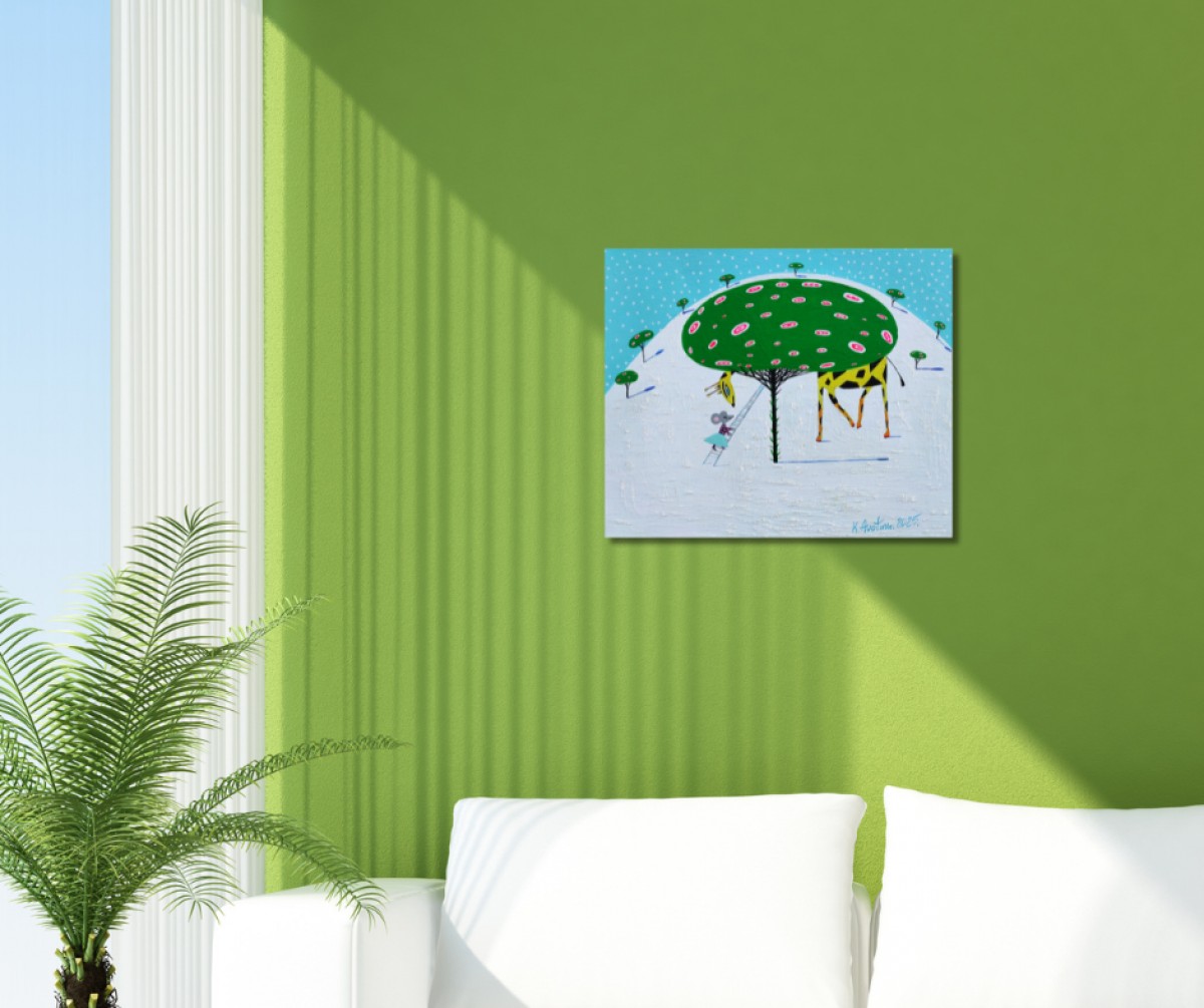 The painting is 2 cm deep and can be hung without an additional frame, also all picture sides are painted.