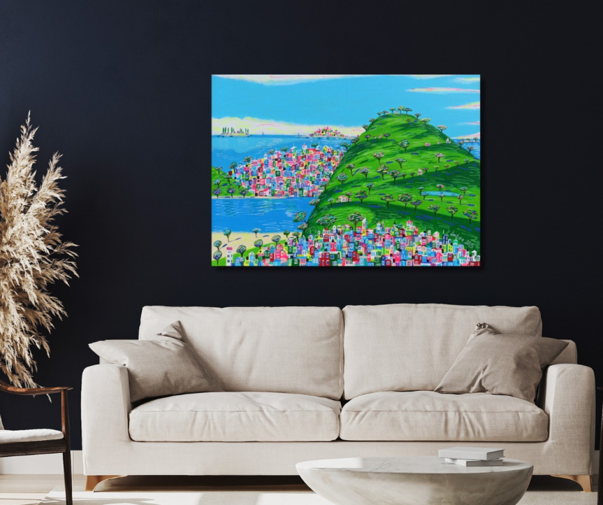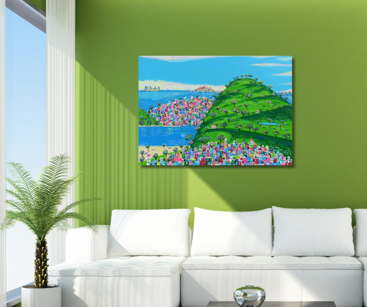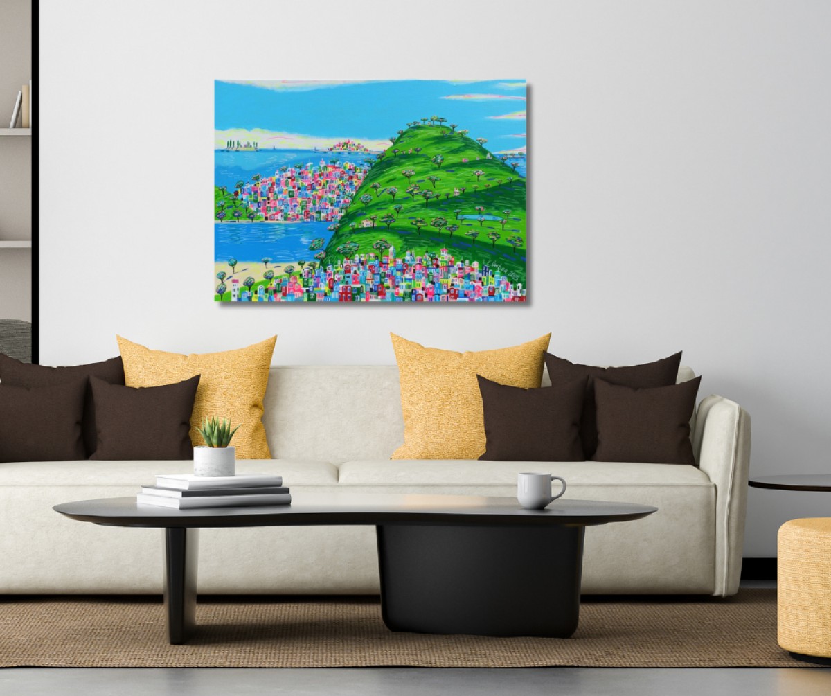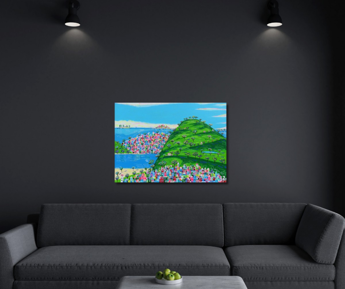 The painting is 2 cm deep and can be hung without an additional frame, also all picture sides are painted.