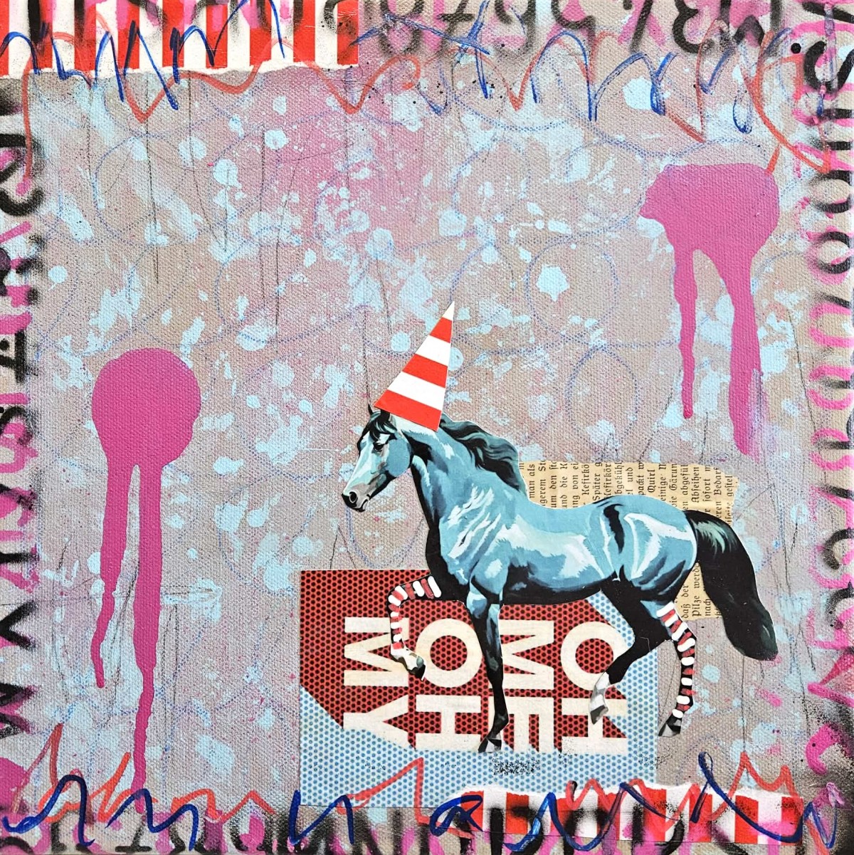 horse pop art in collage and mixed media