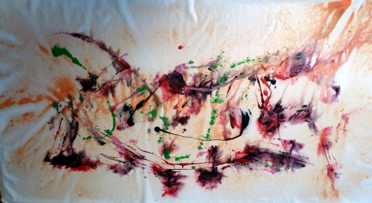 Oeuvre réalisée avec un cric à la place d'un pinceau.