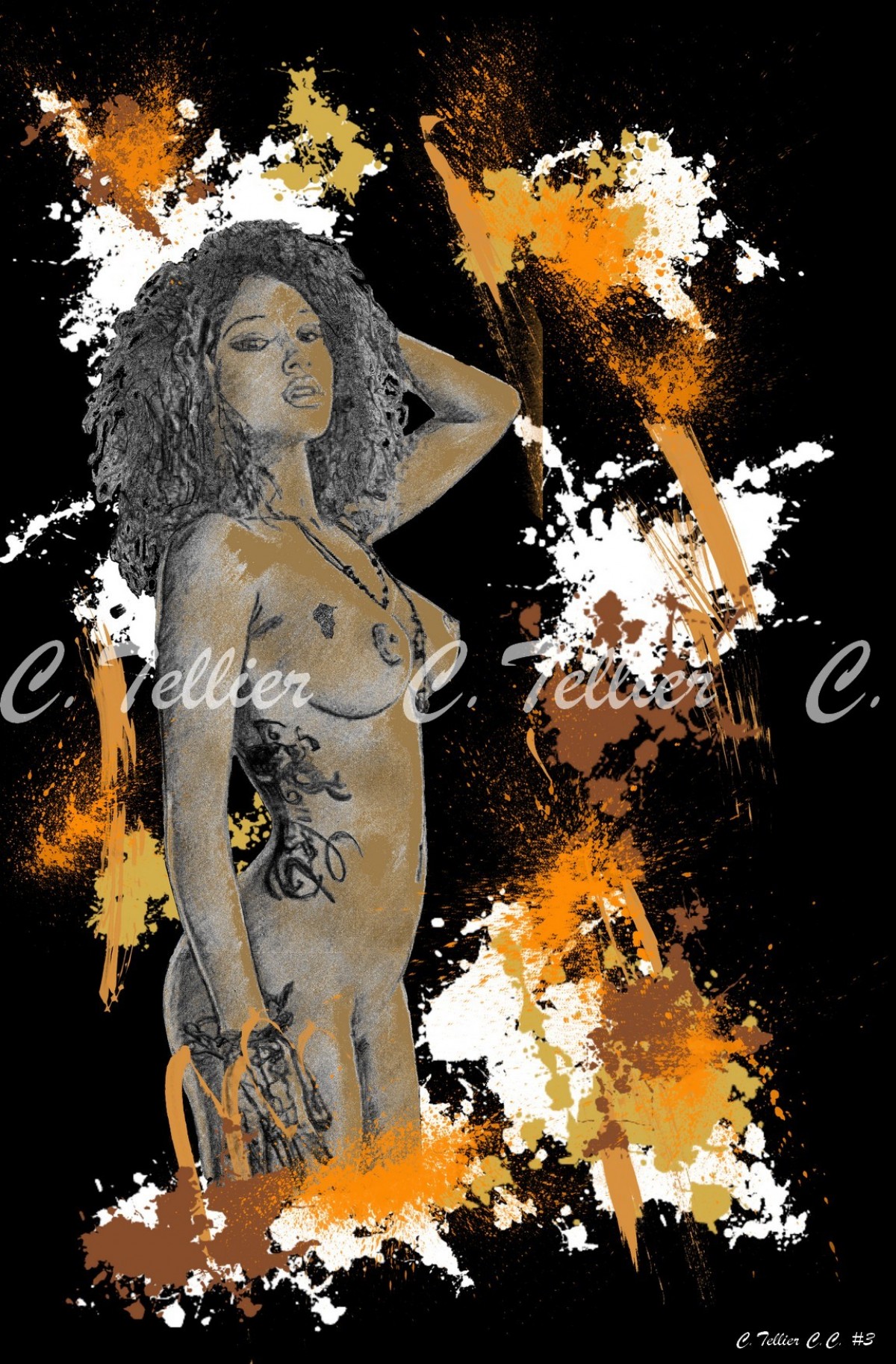 Sérigraphie - Base crayon et feutre - numérisé et imprimé sur support plexiglas PMMA Noir Brillant - 7 couleurs - Format 50x70x0,3 cm - Pièce unique