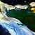 This lyrical abstract painting evokes a kind of green water body from which a river flows. In what looks like a night sky, rocky elements such as meteorites give a spatial and lunar dimension to the landscape. In places, in the mineral soil that surrounds the water, springs seem to emerge from the rock.